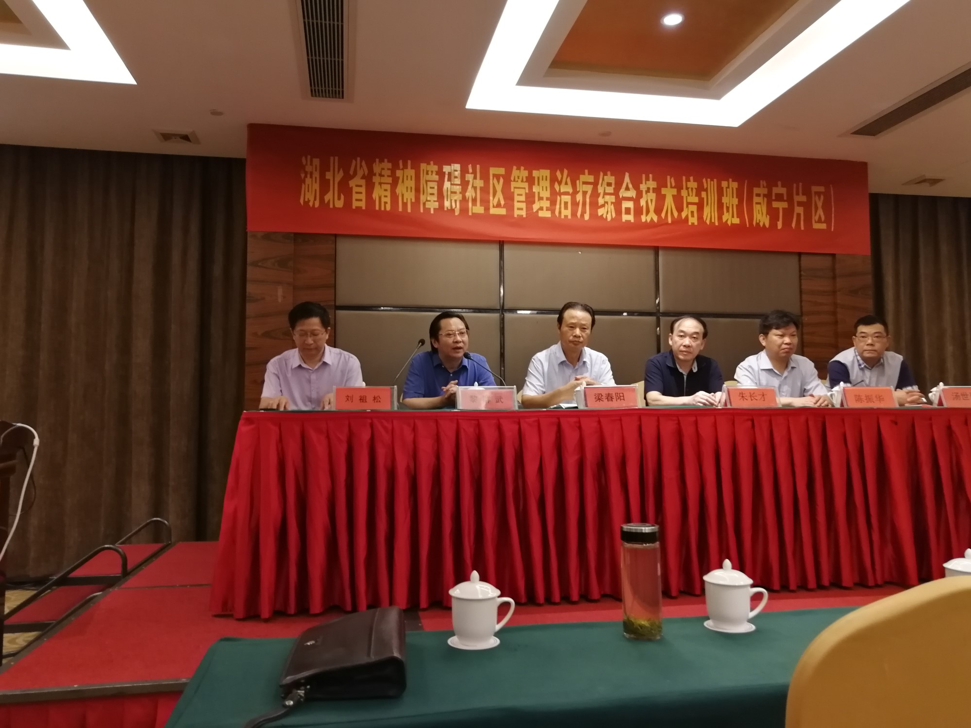 2018年7月11日至13日,由湖北省精神卫生中心主办、咸宁市精神卫生中心承办的《2018年湖北省精神障碍社区管理治疗综合技术培训班(咸宁片区)》在咸宁市华信大酒店成功举办。湖北科技学院附属第二医院书记、院长黎群武教授参加开幕式并致欢迎辞,咸宁市卫计委正县级调研员梁春阳出席会议发表讲话,湖北科技学院附属第二医院常务副书记、中心主任刘祖松主持了开幕式;湖北省精神卫生项目办主任汤世明、湖北省疾控中心慢病所杨树旺教授、咸宁市卫计委疾控科科长黄飞雄等相关领导和专家出席了此次会议。来自咸宁市6个县市区卫计局疾控科科长、疾控中心项目办主任、数据质控员、基层卫生院或社区卫生服务中心的精防人员、湖北科技学院附属第二医院部分医务人员、2018年度(第三批)湖北省精神科医师转岗培训班(咸宁基地)部分学员等共140余人参加了此次培训。